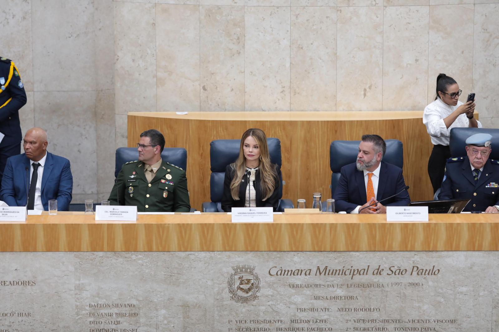 A primeira-dama de MT, Virginia Mendes, foi agraciada nesta quarta-feira (12.12), na Câmara Municipal de São Paulo, durante a sessão especial oferecida pelo vereador Gilberto Nascimento, com a Medalha ‘Mérito das Forças do Brasil, Grau Cavaleiro’, da Associação Brasileira das Forças Internacionais de Paz da ONU (ABFIP), fundada e presidida pelo Dr. Walter Mello Vargas. A indicação foi feita pelo diretor de Relações Públicas da ABFIP, tenente Bispo, pelos relevantes serviços sociais dedicados pela primeira-dama do Estado de maneira voluntária.