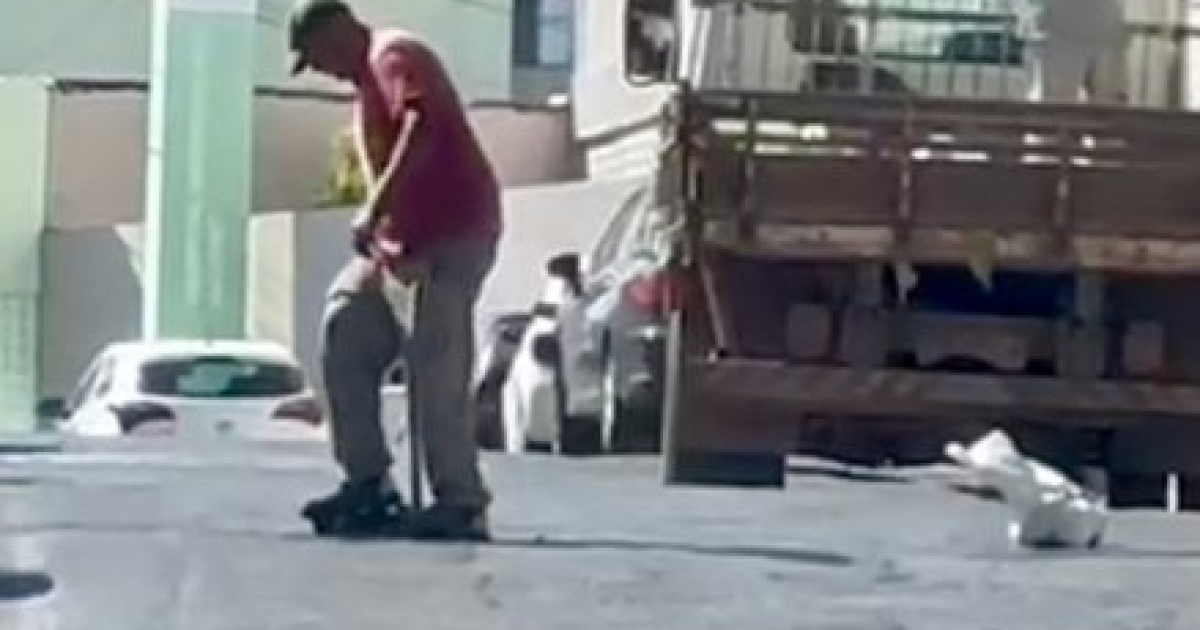 Homem usa pé pra compactar asfalto e vereador fará denúncia