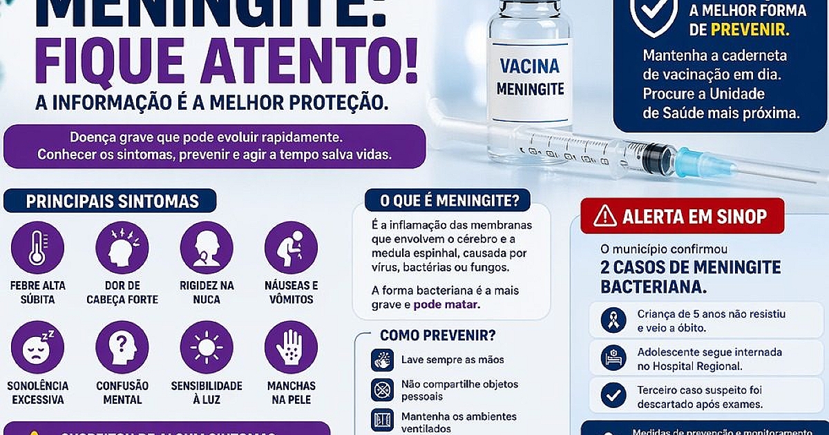 Morte de criança por meningite em Sinop reforça alerta para sintomas e vacinação