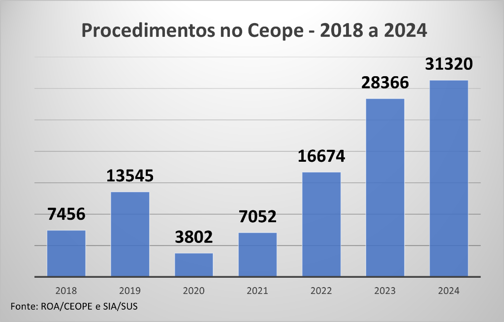 O Centro Estadual de Odontologia para Pacientes Especiais (Ceope), da Secretaria de Estado de Saúde (SES), atendeu 12.184 pacientes desde junho de 2005, quando abriu as portas. Foram 84.060 atendimentos odontológicos, com 288.769 procedimentos até maio deste ano.
