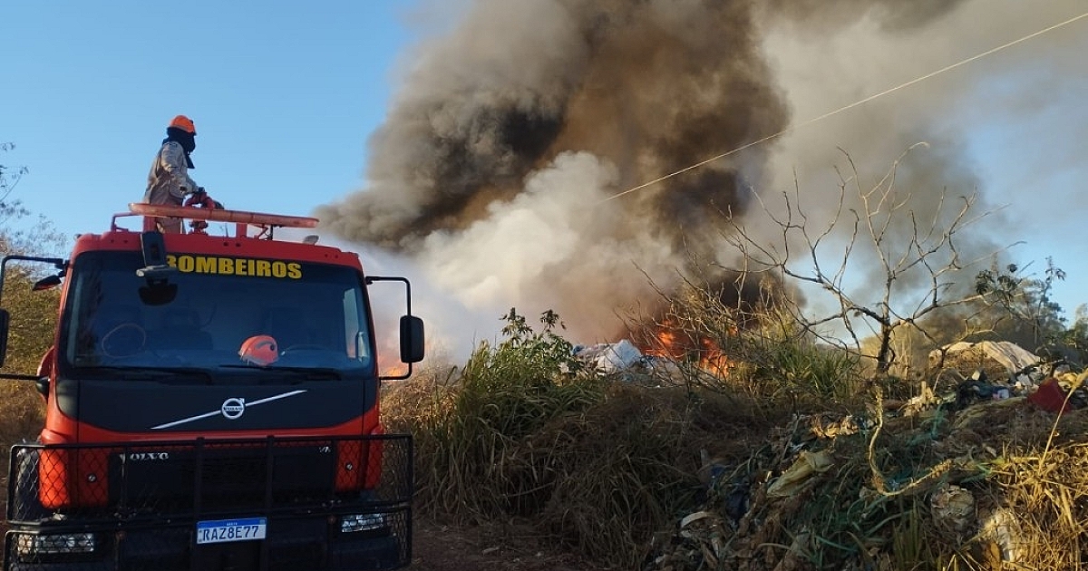 Bombeiros combatem incêndios em aterro sanitário e terreno baldio em Primavera do Leste