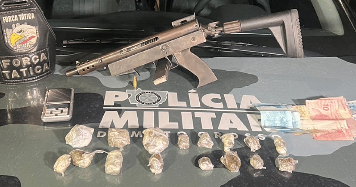 Trio é preso com submetralhadora e porções de drogas em Mato Grosso
