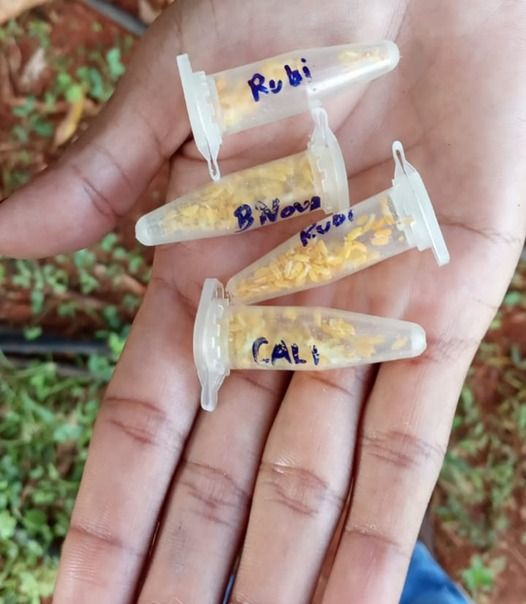 - A Peneira de DNA (Marcadores SSR): Extração de DNA de folhas jovens para identificar, via laboratório, quais plantas herdaram os "genes campeões".