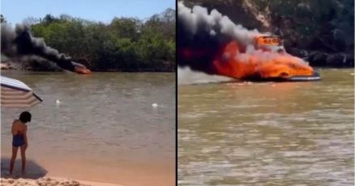 Lancha pega fogo em praia na região do Araguaia