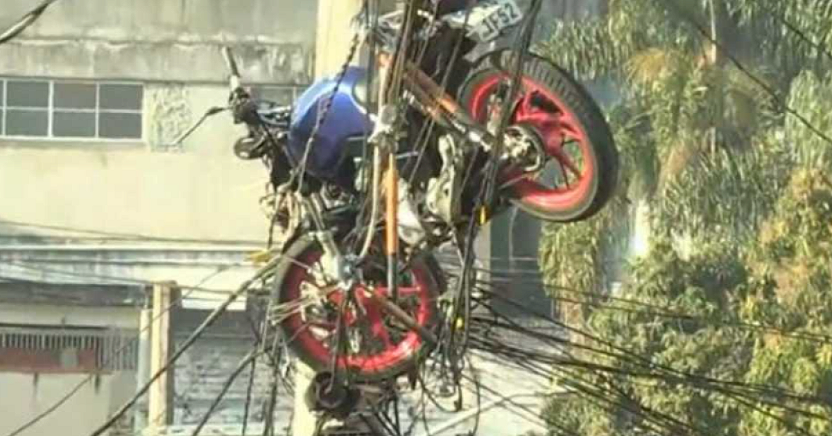 MOTO VAI PARAR EM CIMA DE POSTE APÓS QUEDA DE BALÃO EM SÃO PAULO