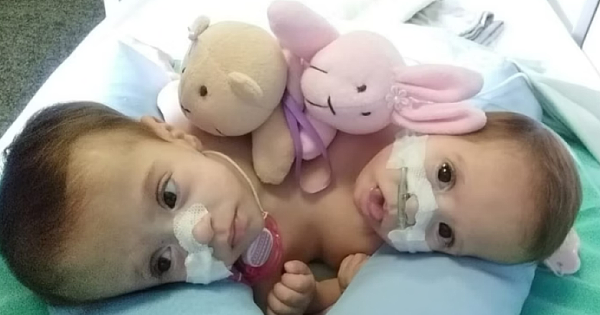 Caso raro: gêmeas siamesas com três pernas deixam hospital pela 1ª vez