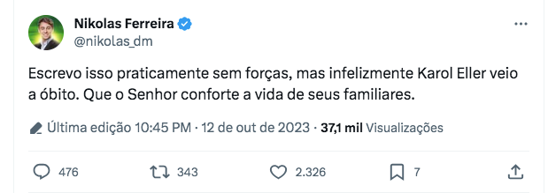 Morre em São Paulo a influenciadora bolsonarista Karol Eller, que afirmava: "Lutei pela pátria"