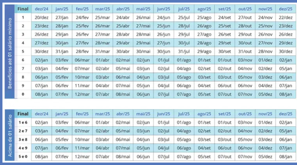 Os cerca de 40 milhões de beneficiários do Instituto Nacional do Seguro Social (INSS) já podem conferir a data de pagamento das aposentadorias, dos auxílios e das pensões em 2025. A autarquia divulgou, no último dia 18, o calendário de depósitos para todo o próximo ano.