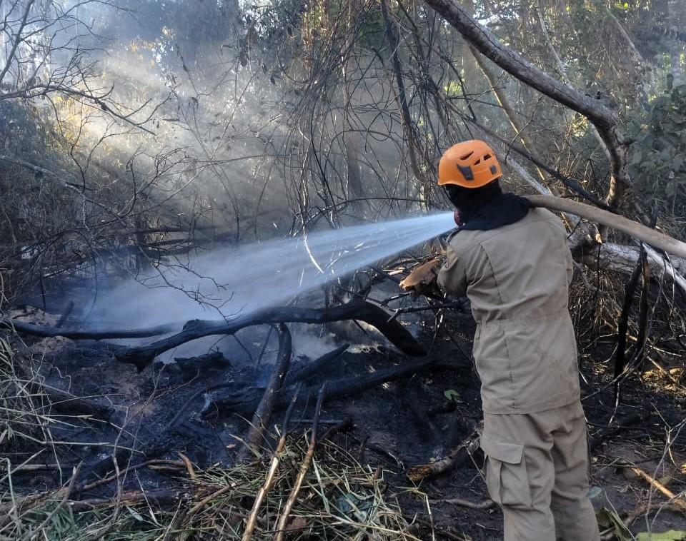 Corpo de Bombeiros age rápido e impede que incêndio em vegetação atinja casas