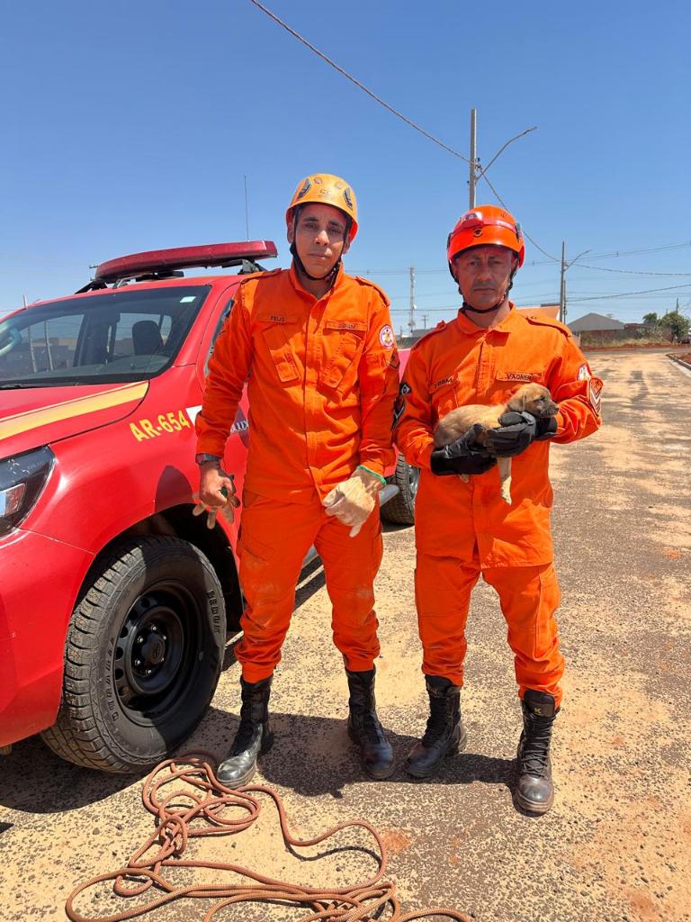 Bombeiros resgatam filhote de cachorro que estava preso em bueiro
