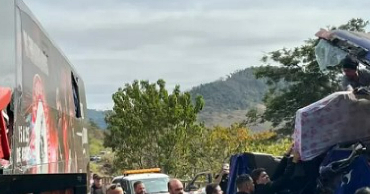 Ônibus da dupla César Menotti & Fabiano se envolve em acidente com carreta na BR-262, na Zona da Mata