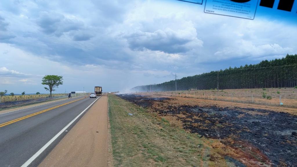 Fogo acabou de propagando do veículo e atingiu a vegetação às margens da rodovia