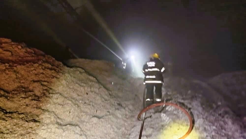 O fogo se concentrou na parte superior da esteira, com cerca de 15 metros de altura, no interior da estrutura