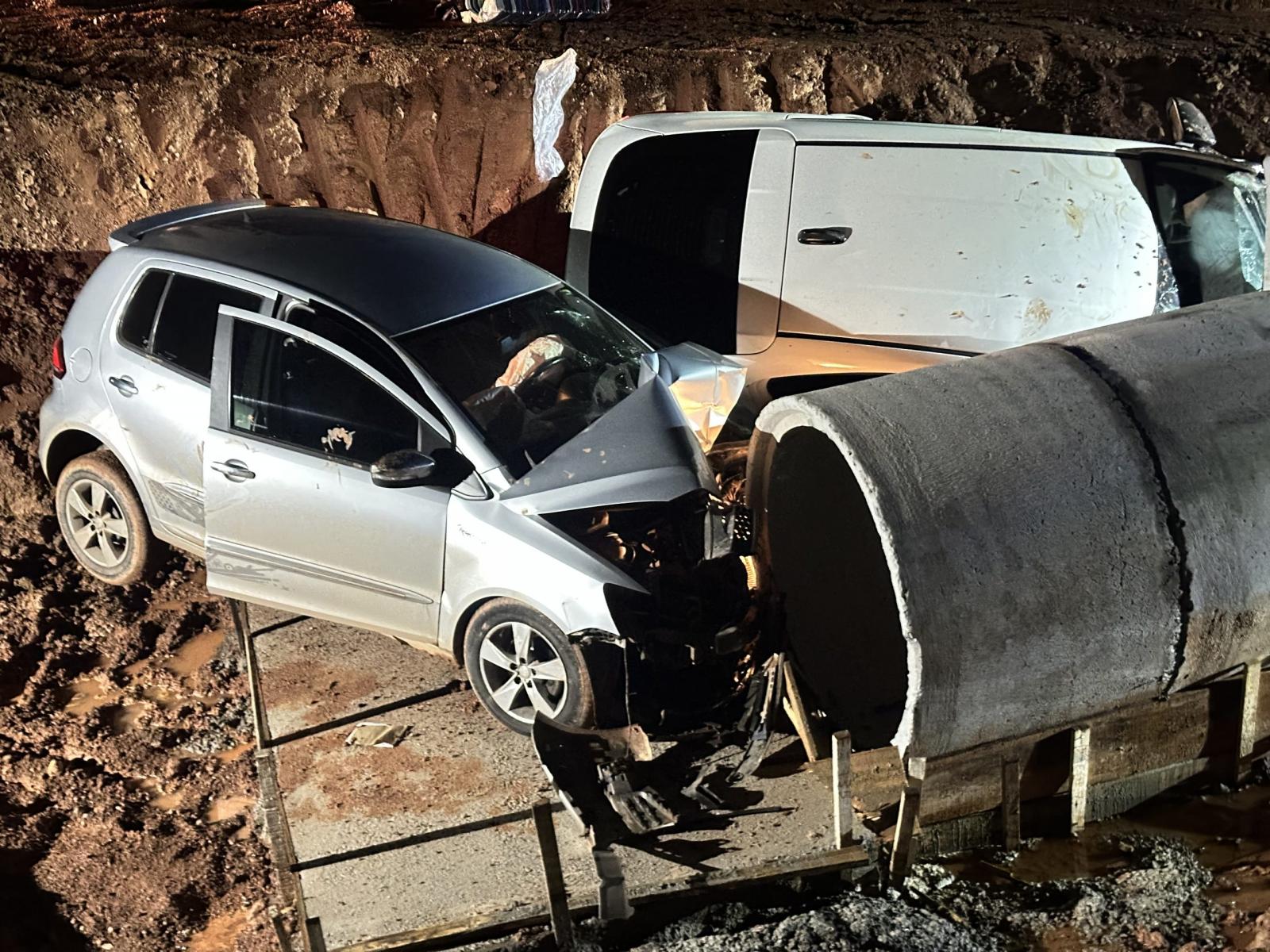 Discussão no trânsito termina em perseguição e acidente em obra no bairro Sucuri em Várzea Grande