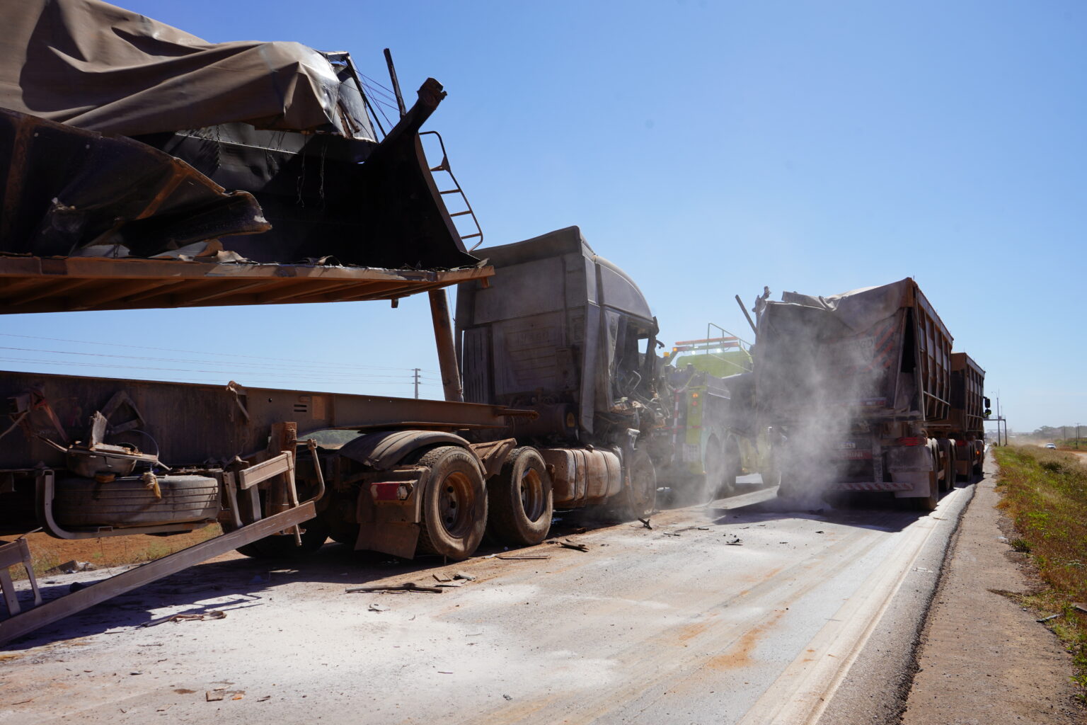 Um acidente entre dois caminhões, na tarde desta segunda-feira (17), causou grande destruição em um trecho da BR-163, a cerca de dois quilômetros de Lucas do Rio Verde (MT). A batida ocorreu no sentido Sorriso e deixou um dos veículos com a caçamba completamente destruída, conforme relataram testemunhas que descreveram a cena como um “cenário de guerra”.