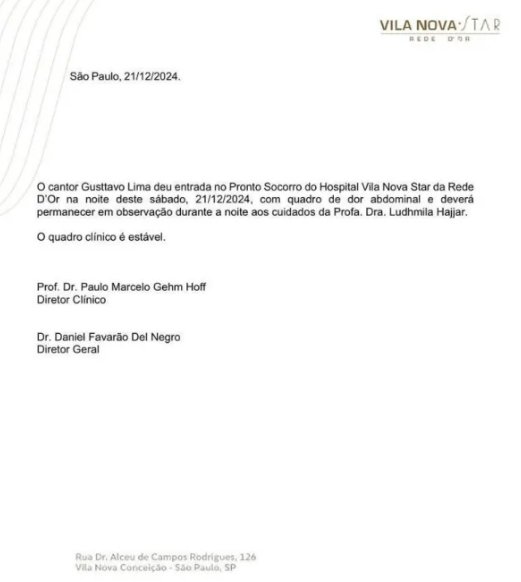 Gusttavo Lima é internado em São Paulo após cancelar show no Villa Mix