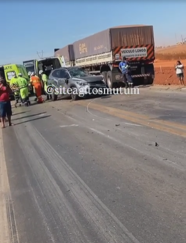 Motorista morre em acidente entre carro e carretas na BR-163, em Nova Mutum
