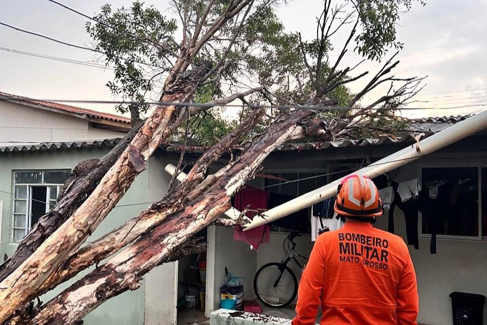 O Corpo de Bombeiros Militar de Mato Grosso (CBMMT) atendeu, na quinta-feira (16.10), uma ocorrência de queda de árvore sobre o telhado de uma residência após forte chuva acompanhada de ventos intensos em Primavera do Leste (a 243 km de Cuiabá).