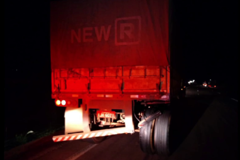 Motorista perde o controle e provoca colisão com caminhão na BR-364 em Jaciara
