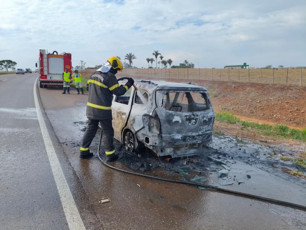 Corpo de Bombeiros combate incêndio em carro de passeio na BR-364