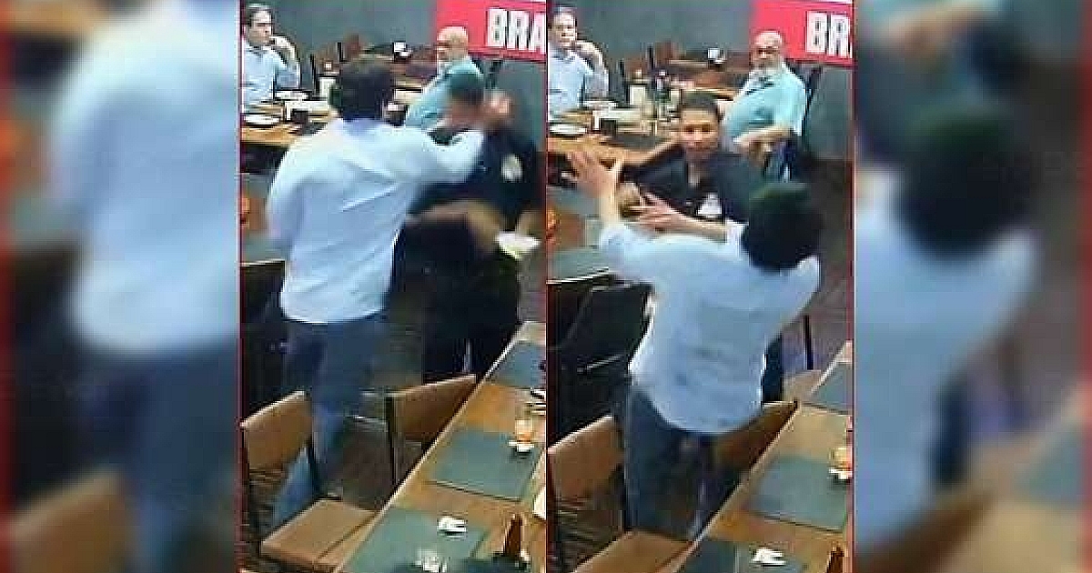Homem teria dado um tapa no funcionário após discussão sobre pagamento da conta e acabou derrubado com um único golpe
