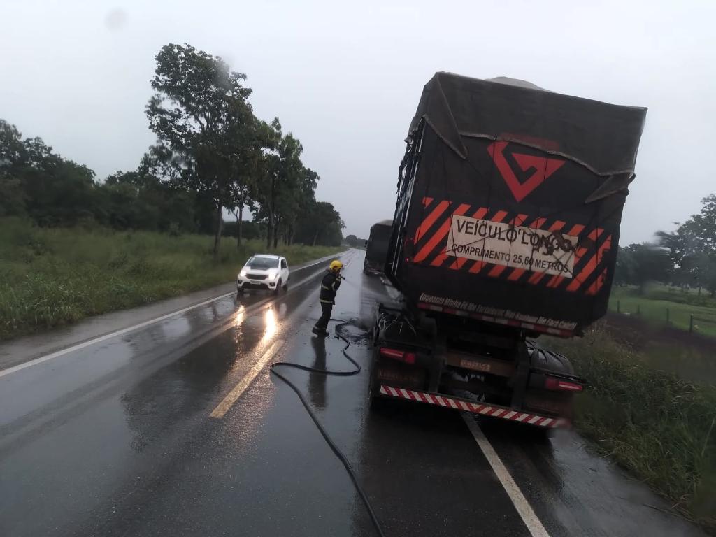 Corpo de Bombeiros combate incêndio em carreta na BR-070