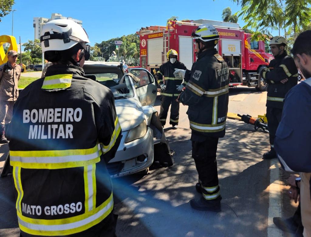 O Corpo de Bombeiros Militar de Mato Grosso (CBMMT) realizou, neste domingo (18.5), um simulado de salvamento em plena praça pública com o objetivo de conscientizar a população sobre a importância da prevenção e do comportamento seguro no trânsito. A atividade ocorreu na Praça da Bíblia, em Sinop (a 481 km de Cuiabá).
