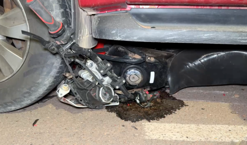 Caminhonete arrasta motociclista após colisão e atinge dois carros estacionados em Sinop