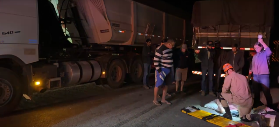 De acordo com relatos colhidos no local, o acidente teve início quando uma carreta carregada com milho tombou e atingiu violentamente a cabine de outra carreta que seguia em sentido contrário. Com o impacto, o motorista ficou preso às ferragens, exigindo um trabalho detalhado e cuidadoso da equipe de resgate para retirá-lo com segurança.