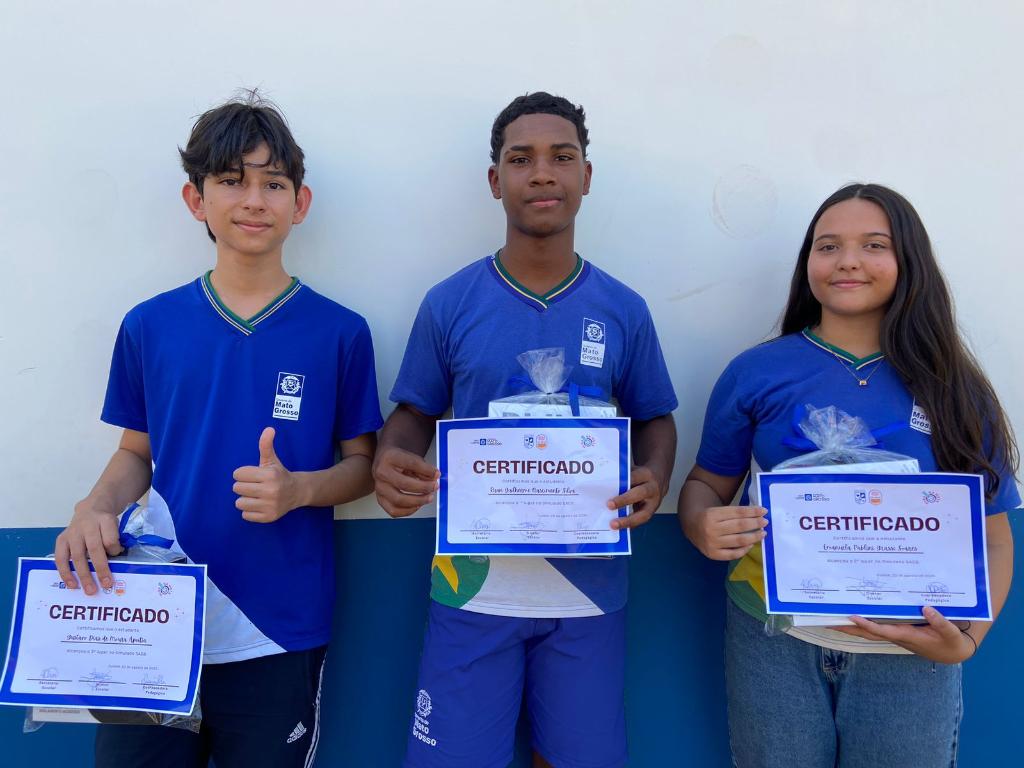 Já no simulado do Saeb, o destaque foi para três alunos do 9º ano. Ruan Guilherme Nascimento Silva, 13 anos, conquistou o 1º lugar; seguido de Emanuela Pablini Grassi Soares, em 2º lugar; e Gustavo Dias de Moura Apoitia, em 3º.