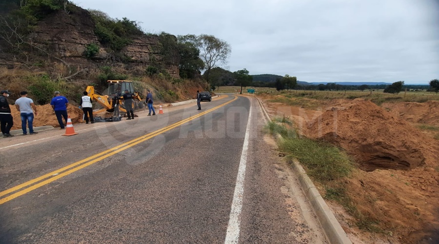 Trabalhadores que operavam máquinas na MT-471 localizaram o cadáver em estado avançado de decomposição; polícia investiga o caso