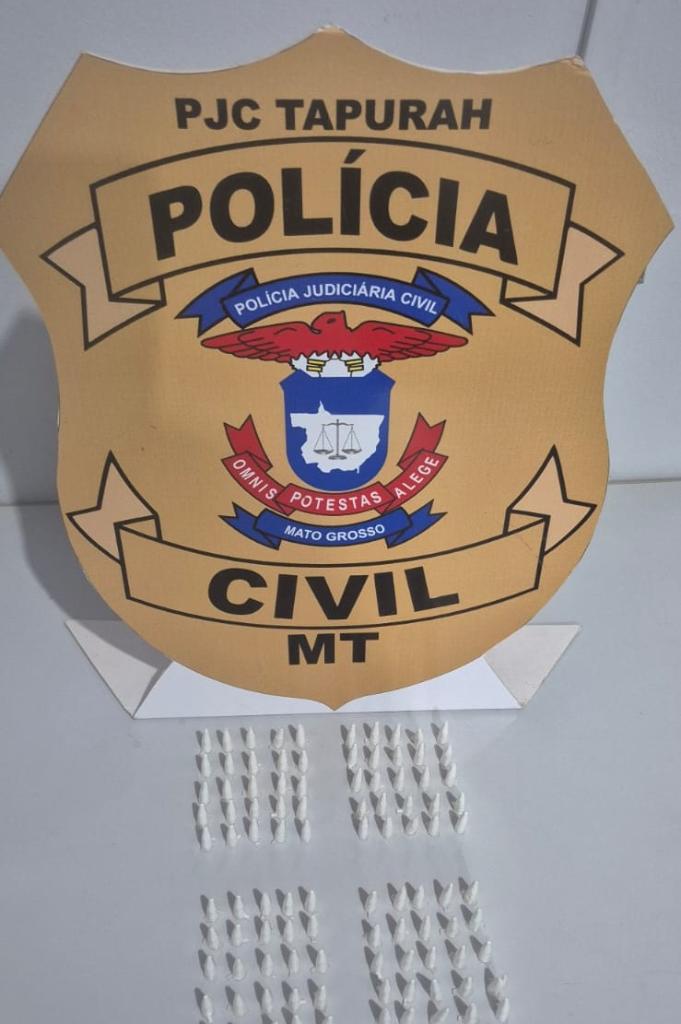 Ao todo, três pessoas foram presas e apreendidos 100 pinos de entorpecentes, uma arma de fogo longa, calibre 22 e uma luneta