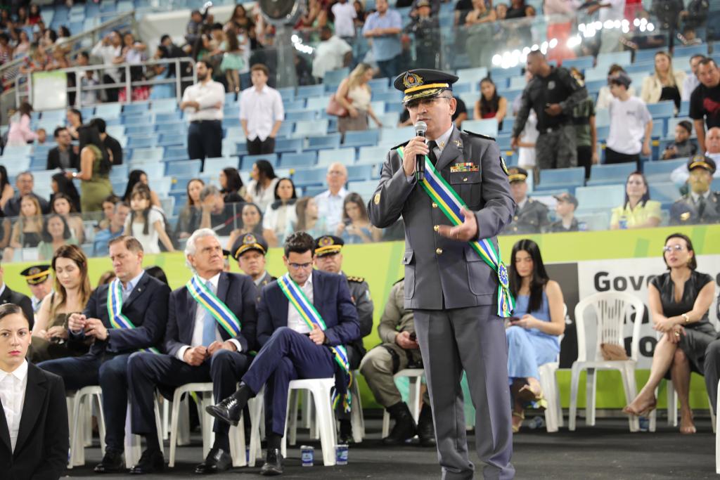 Presente na solenidade, o governador do Estado de Goiás, Ronaldo Caiado, parabenizou a promoção dos policiais militares nos 190 anos da PMMT, enalteceu a atual gestão do Governo do Estado de Mato Grosso com a valorização das Forças de Segurança, bem como a integração entre os Estados no combate às facções criminosas.
