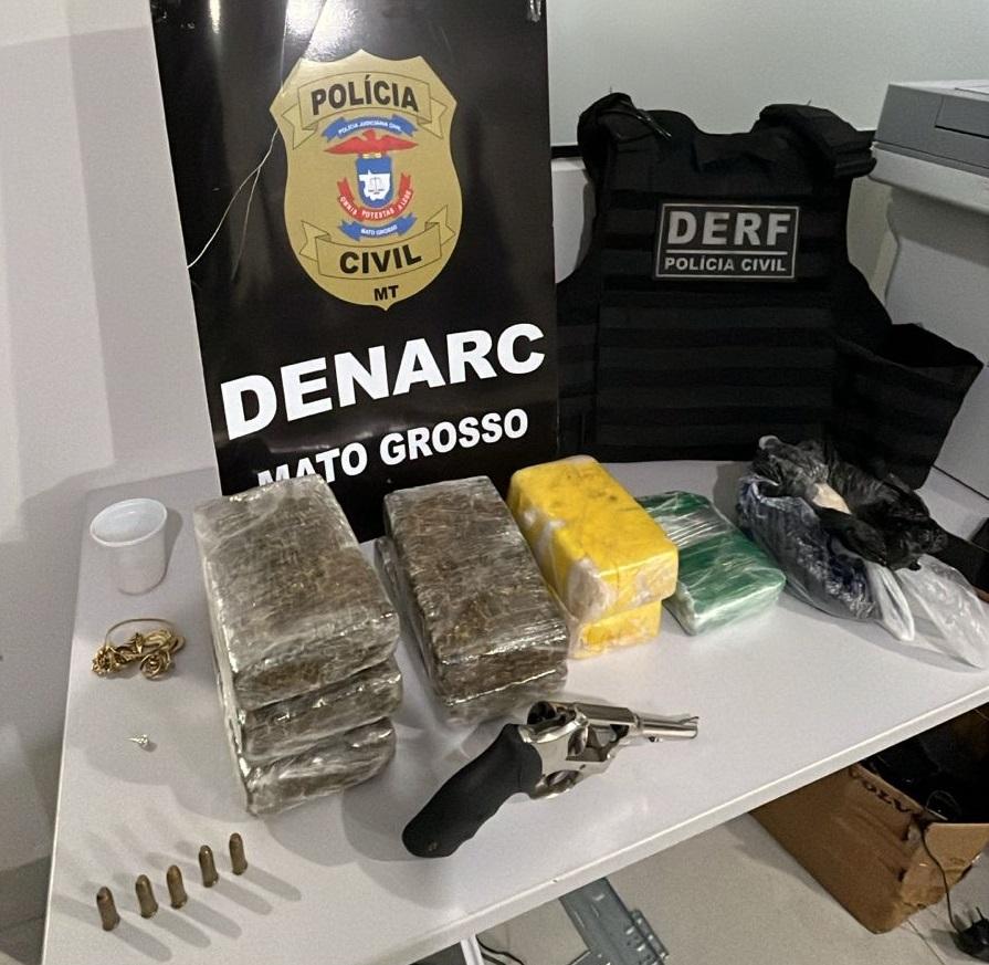 A ação, realizada com apoio da equipe da Delegacia Especializada de Repressão a Narcóticos (Denarc), resultou na apreensão de diversas porções de entorpecentes, entre maconha e pasta base, arma de fogo e munições.