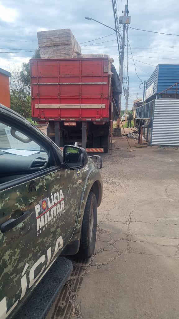 Batalhão Ambiental da PM apreende caminhão carregado com carga irregular de madeira