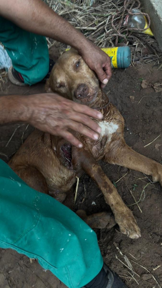 Cachorro é resgatado após ser enterrado vivo em terreno de Cuiabá