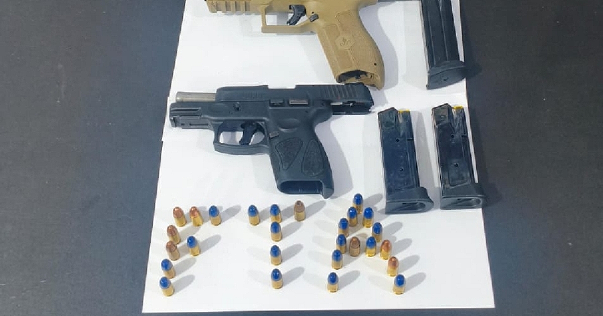 Os suspeitos foram presos em flagrante após efetuarem disparos com pistolas em uma chácara