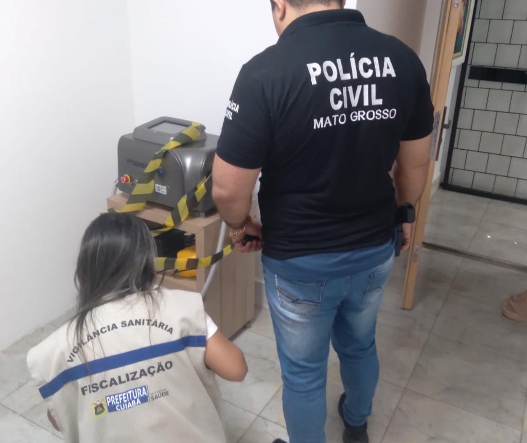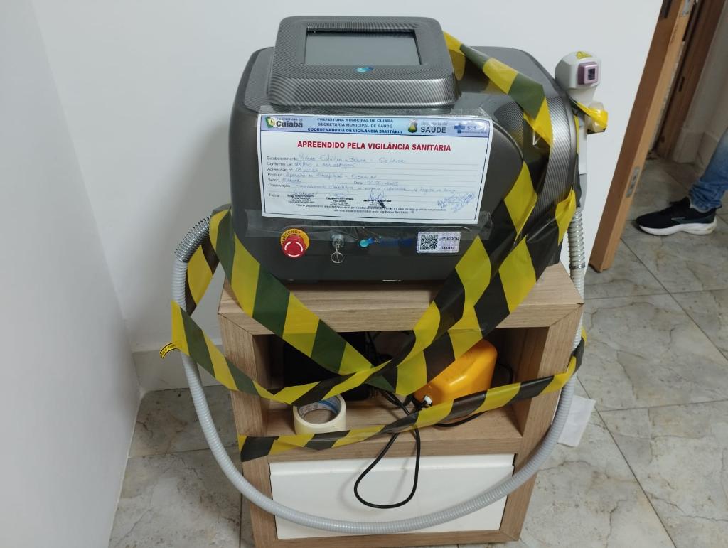 A proprietária de uma clínica de depilação a laser, investigada pela Polícia Civil por não obedecer à ordem de interdição da sua empresa, desobedeceu novamente à interdição do estabelecimento e passou a atuar em outro endereço na Capital. A clínica, que estava funcionando de forma clandestina, foi fechada pela terceira vez nesta segunda-feira (2.6), em ação rápida da Delegacia Especializada de Defesa do Consumidor (Decon) e da Vigilância Sanitária Municipal de Cuiabá.