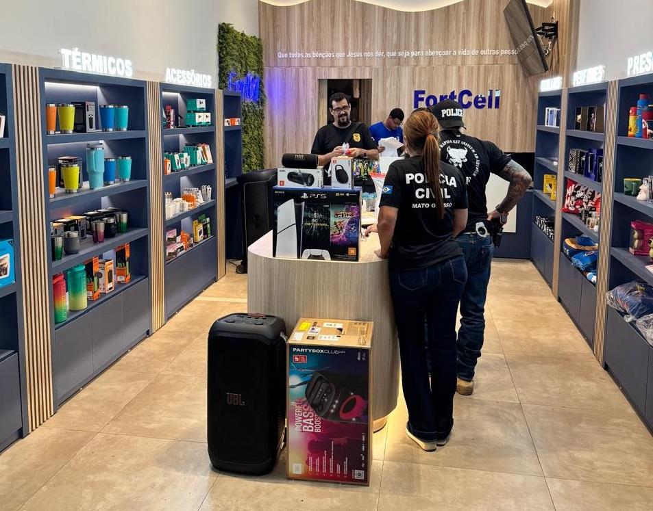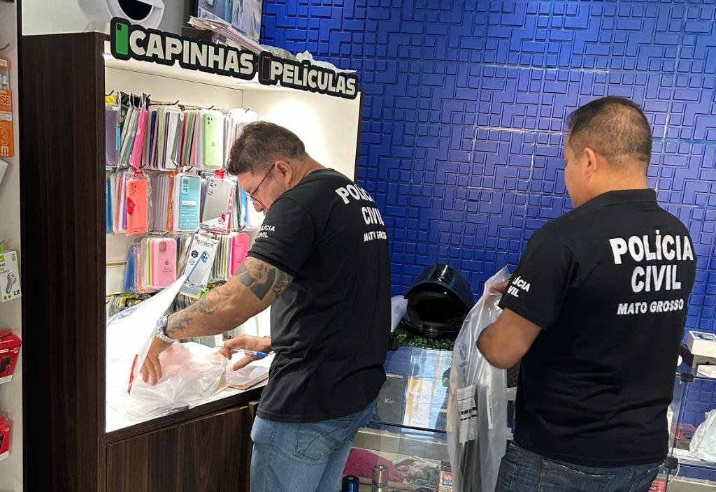 Na Capital, os mandados foram cumpridos simultaneamente pela equipe da Derf Cuiabá em estabelecimentos comerciais e residências de seus respectivos sócios, resultando na apreensão de 32 aparelhos celulares com indícios de origem ilícita. Entre os alvos da busca e apreensão estava uma loja de celulares, instalada no Shopping Goiabeiras.
