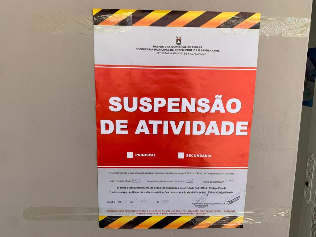 O laboratório, localizado no bairro Bandeirantes, em Cuiabá, estava funcionando de forma irregular e não possuía alvará de localização, funcionamento ou sanitário.
