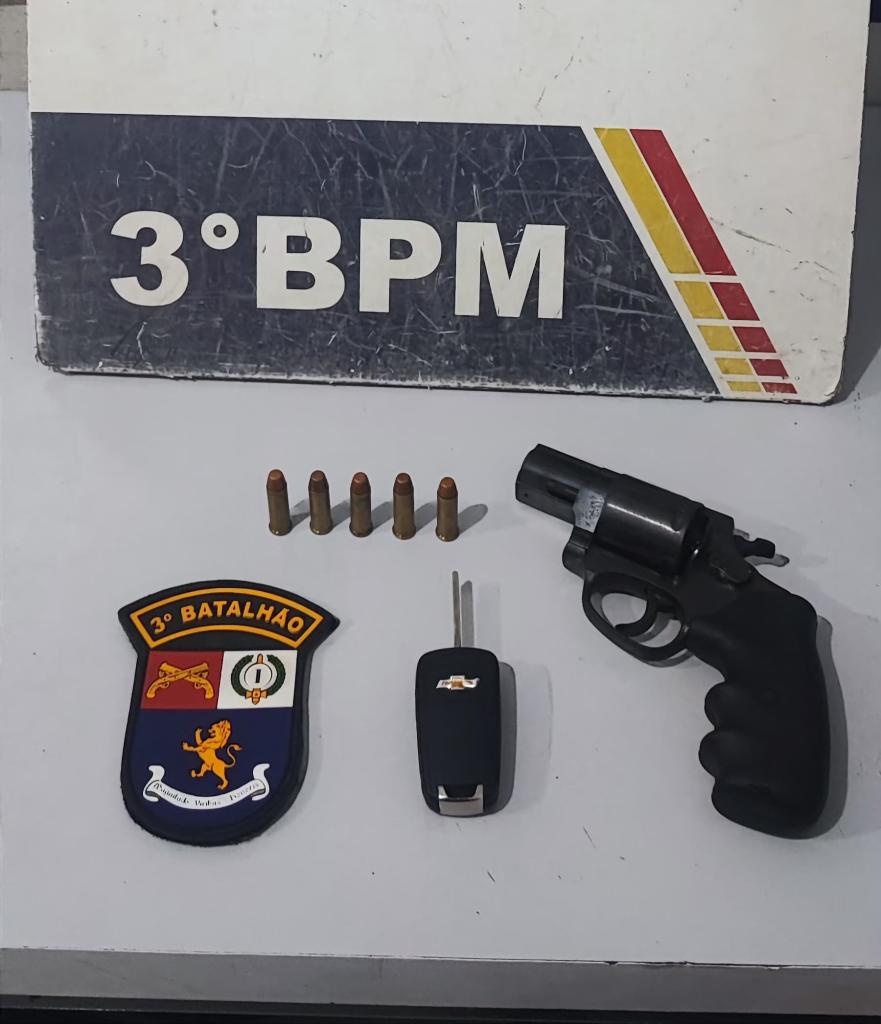 PM recupera carro roubado, prende suspeito e apreende arma de fogo em Cuiabá